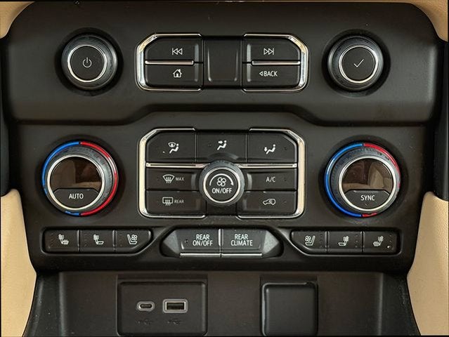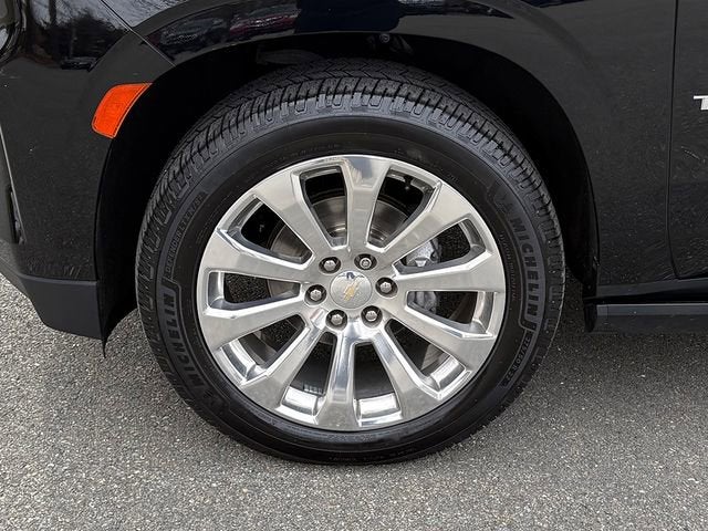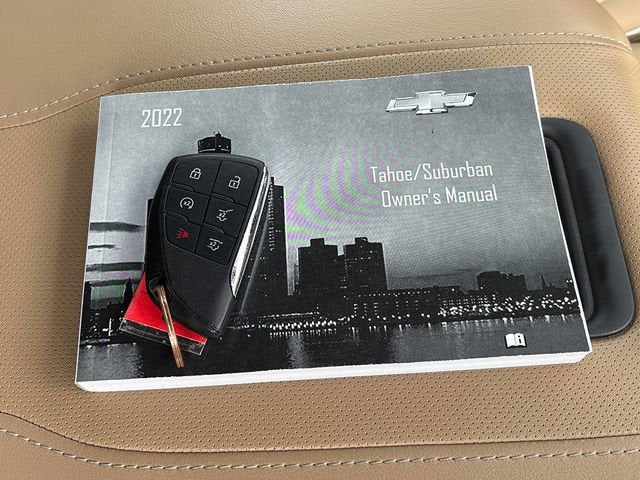 This wonderful-looking 2022 Chevrolet Tahoe includes the following equipment and details: Bluetooth®/HANDS FREE CELLPHONE, SUNROOF / MOONROOF, NAVIGATION, THIRD ROW SEATING, BACKUP CAMERA, HEATED SEATS, ALLOY WHEELS, REMOTE STARTER, and HEATED STEERING WHEEL Enhanced Display & Alert Package (15 Diagonal Multi-Color Head-Up Display, HD Surround Vision, Inside Rearview Auto-Dimming Rear Camera Mirror, Rear Camera Mirror Washer, and Rear Pedestrian Alert), 10 Speakers, Alloy wheels, Apple CarPlay/Android Auto, Auto High-beam Headlights, Driver & Front Outboard Passenger Airbags, Dual-Pane Power Panoramic Sunroof, Front dual zone A/C, Fully automatic headlights, Heated 2nd Row Outboard Seats, Heated Driver & Front Passenger Seats, Heated front seats, Heated rear seats, Heated steering wheel, Leather steering wheel, Low tire pressure warning, Navigation System, Power Liftgate, Rain sensing wipers, Remote keyless entry, Set of 4 Wheel Locks (LPO), and Start/Stop System Disable Button.