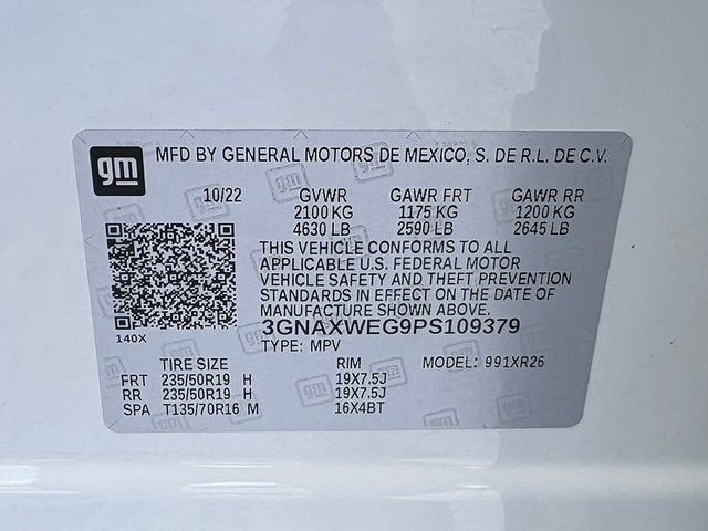 This outstanding 2023 Chevrolet Equinox includes the following equipment and details: 2 SETS OF KEYS, Bluetooth®/HANDS FREE CELLPHONE, SUNROOF / MOONROOF, BACKUP CAMERA, HEATED SEATS, ALLOY WHEELS, and REMOTE STARTER Advanced Safety Package (Adaptive Cruise Control, HD Surround Vision, and Outside Heated Power-Adjustable Mirrors), 6 Speakers, Air Conditioning, Alloy wheels, Bose Premium 7-Speaker Audio System Feature, Front dual zone A/C, Fully automatic headlights, Heated Driver & Front Passenger Seats, Heated front seats, Heated Steering Wheel, Low tire pressure warning, Power Liftgate, Power Sunroof, Premium audio system: Chevrolet Infotainment 3, Premium Cloth Seat Trim, Remote keyless entry, and Security system.