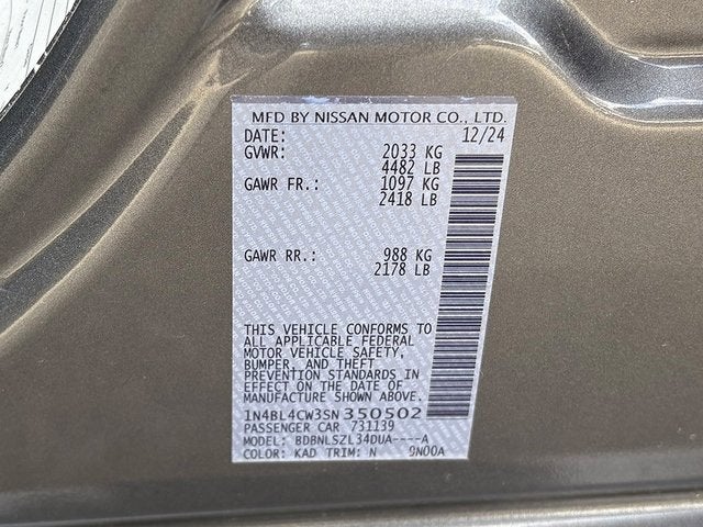 This fantastic-looking 2025 Nissan Altima includes the following equipment and details: ONE OWNER, CLEAN CARFAX/NO ACCIDENTS REPORTED, Bluetooth®/HANDS FREE CELL PHONE, BACK UP CAMERA, and ALL WHEEL DRIVE 6 Speakers, Air Conditioning, Alloy wheels, Front Bucket Seats, Fully automatic headlights, Low tire pressure warning, and Remote keyless entry.